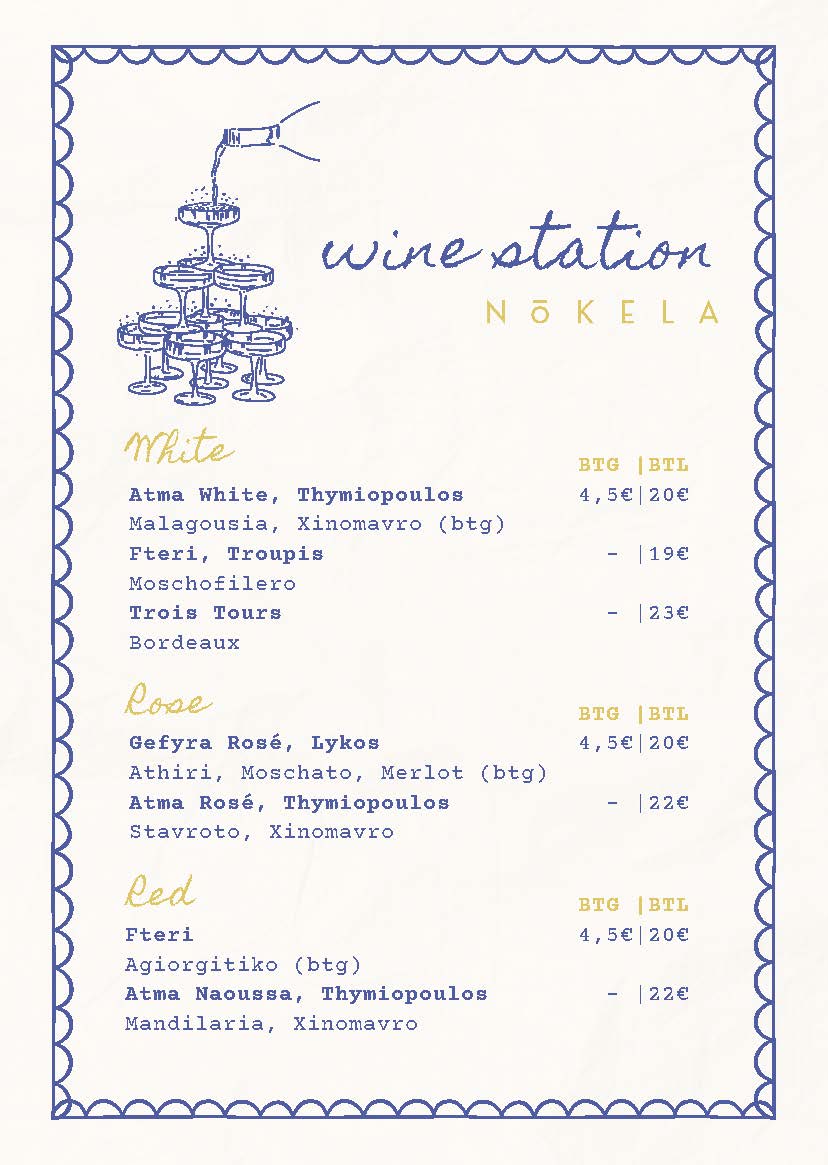 Η λίστα των κρασιών μας είναι προσεκτικά curated, με ετικέτες που αναδεικνύουν τον πλούτο της ελληνικής οινοποιίας και συνοδεύουν τη φιλοσοφία των tapas. Την υπογράφουν οι Επτά Μάρτυρες, ένα από τα πιο καταξιωμένα wine bars της Αθήνας, δίνοντας στην κάβα του BAR 107 κύρος, γνώση και μια σύγχρονη οινική ματιά που εκφράζει την ουσία της αθηναϊκής wine κουλτούρας.